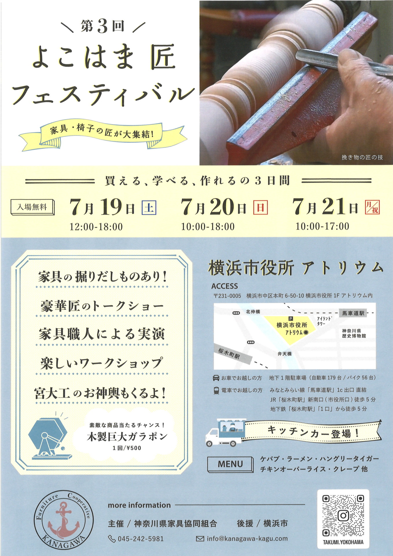 HOME > イベント > 第3回 よこはま 匠 フェスティバル 2025年7月18日 令和7年7月19日(土)~21日(月祝) 横浜市役所アトリウムにて開催いたします 第3回よこはま匠フェスティバル_フロアマップとWS情報③ 第1回・第2回よこはま匠フェスティバル全体撮影の様子です。 Twitter Share Hatena Pinterest LINE URLコピー